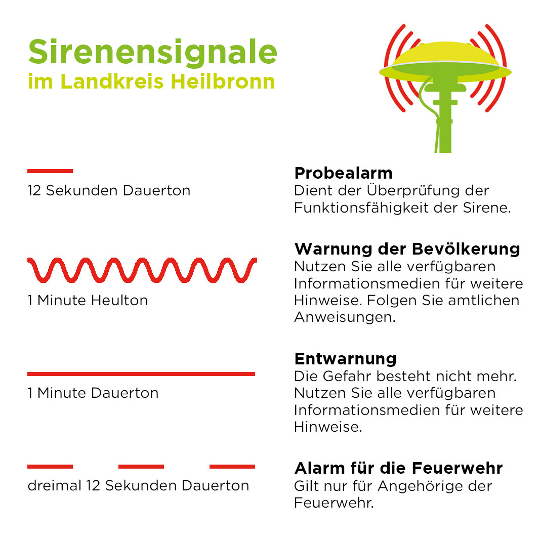 Um die korrekte Funktionsfähigkeit der Sirenen zu testen, ist ein Probealarm sämtlicher Signale für den